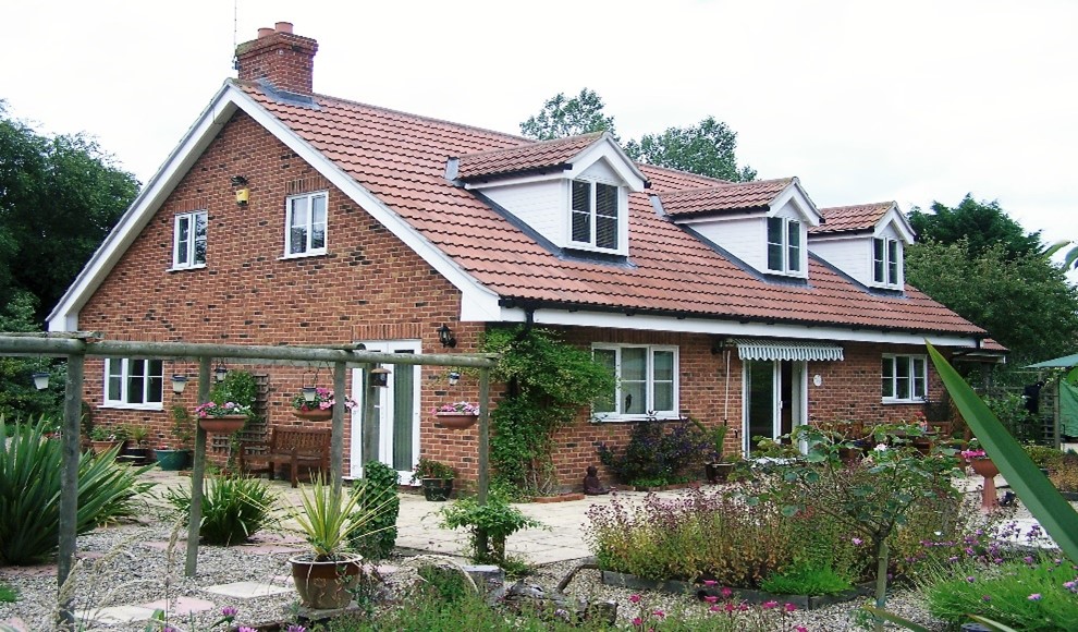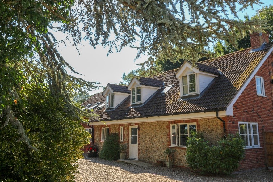 The house is a detached property, set in two thirds of an acre of land. The house is a redbrick and flint two-storey chalet style house in character with all the other larger houses in the village.
