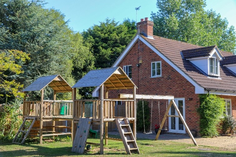 There two further detached building in the grounds. One is equipped as an activity and Theraplay room and the other is a meeting and formal therapy room for DDP. The house is surrounded by extensive gardens enclosed by hedges, trees and large wooden gates with the garden split into several distinctive areas. There are lawns and established hedges, an orchard with apple, pear and plum trees, soft fruit and a trampoline. The back garden is south facing, it has a patio and barbecue area and a summerhouse. To the west of the house is a lawn for outdoor games and recreation with a climbing frame.